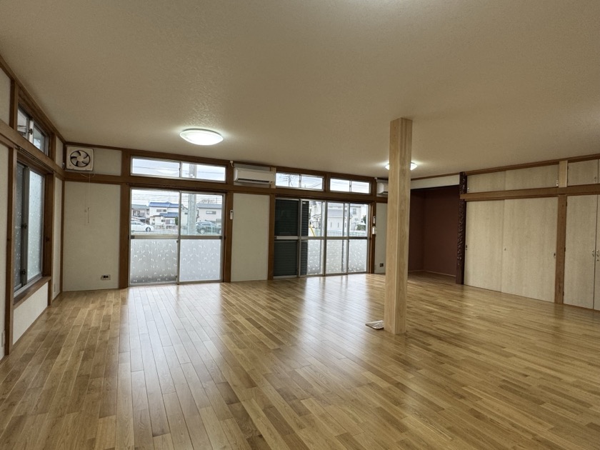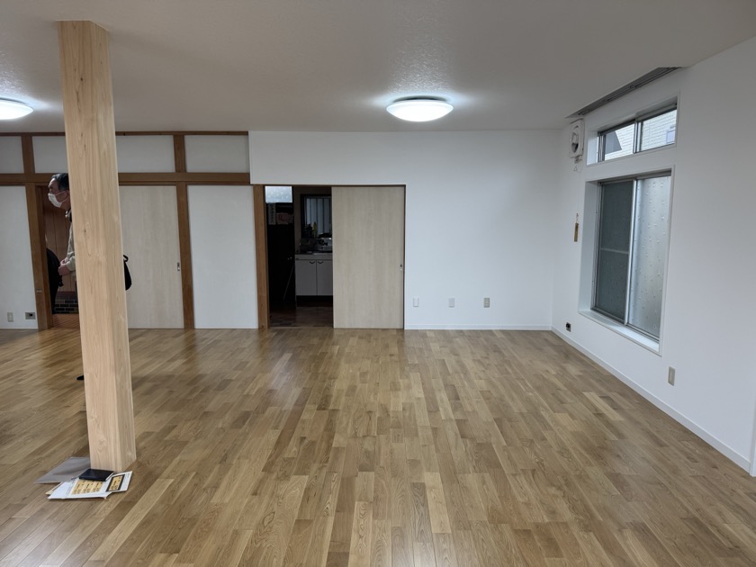 築50年超の地域の自治会館の改修計画。地域の世帯の家族構成も変化し、子ども中心の利用から年配の方々のクラブ活動へと利用方法も変化した自治会館。元々和室/洋室8畳x4間で宿泊や冠婚葬祭にも利用を検討したが、利用者の変化により、軽運動の活動やテーブルイスの利用への変化にあわせて、欄間を取り払い活動スペースを一室に改修。あわせて耐震改修及びトイレの個室化/バリアフリー化も行った。